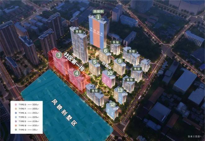 产品户型:目前主推建面约226-330㎡纯改善大平层/小洋房,部分楼栋有162-247㎡户型,均为4-5房设计,层高3.3-3.5米,得房率最高达83%