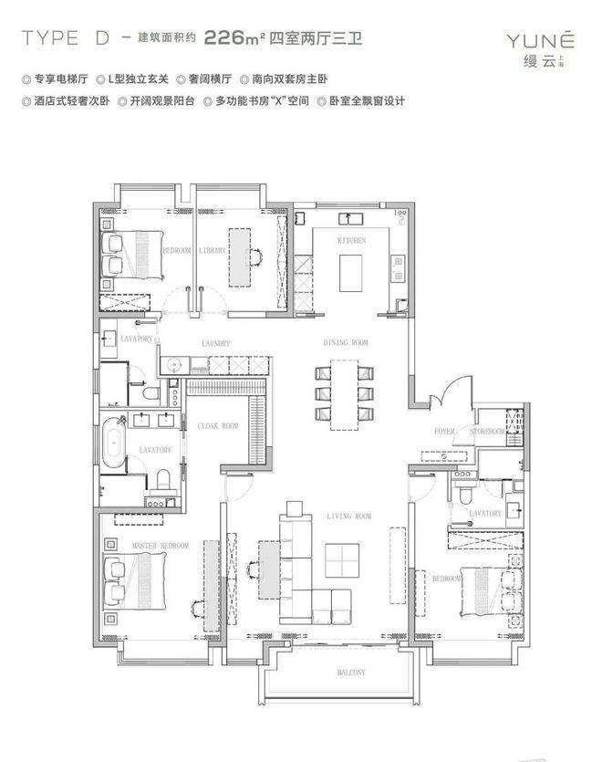 项目规划为纯大宅社区,主力户型建筑面积约153-330平方米,打造三房至四房的阔绰空间。所有户型层高均约3.3米,配合通顶设计的室内门,营造出极具震撼力的空间感与开阔视野。特别是建面约206-330平方米的收官之作,采用准一梯一户的设计,确保了业主的私密性与尊崇感。无论是超大的景观阳台,还是精心设计的玄关、厨房与卫浴空间,每一处细节都体现出对高端生活方式的深刻理解。
