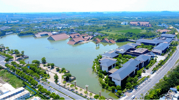 园林景观,更是一场文化的沉浸式体验 。“富林十景”不是简单的景观堆砌:舟影桥的弧度复刻了遗址出土的古船轮廓,茶庭的青石板拼着青铜器纹样,酒坊坞的叠水声特意调得像古法酿酒时的潺潺声。
