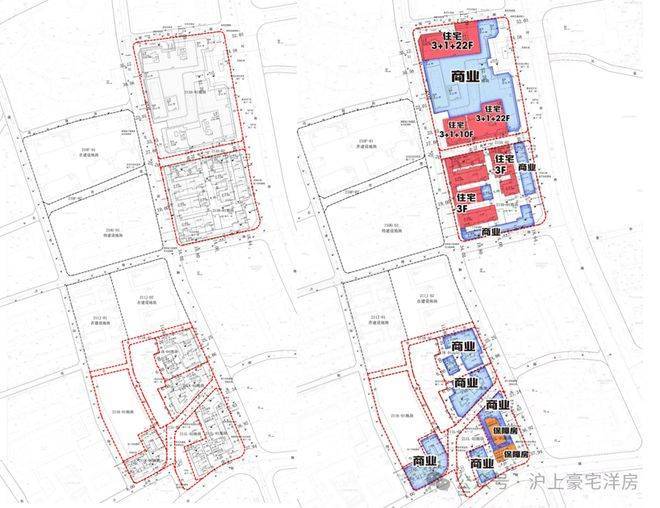 A地块:高端精品商业+高层住宅(约150套),北栋为建面约263-370-487㎡;南栋为建面约279-290-375-494㎡;