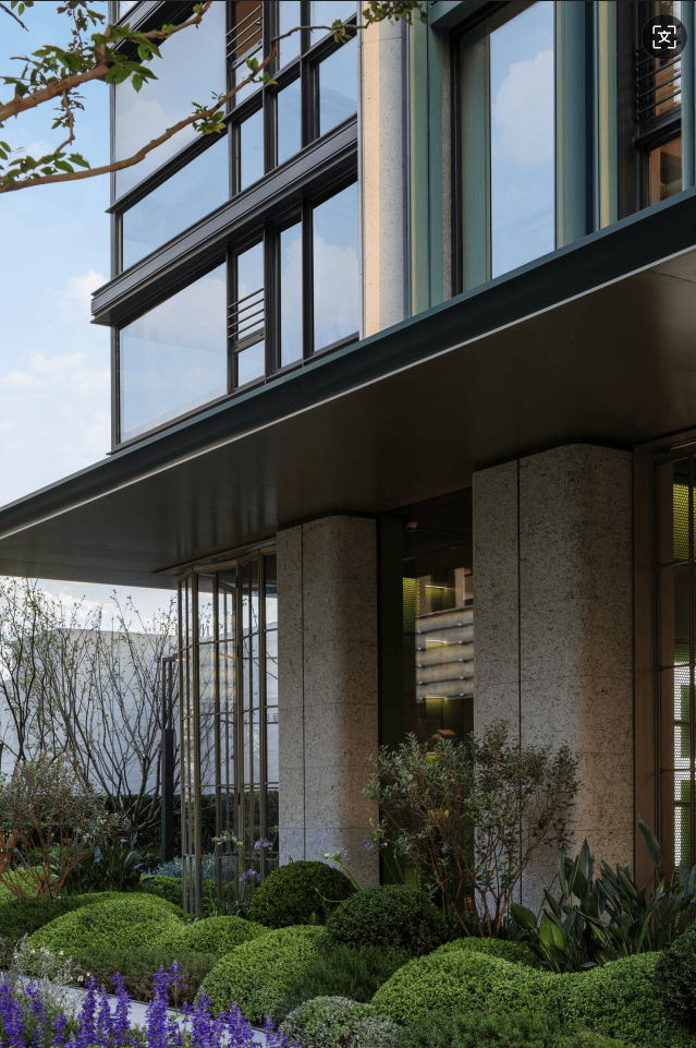 最后讲讲项目的建筑立面,它采用了爱马仕同款博斯普鲁斯绿,这种绿色在中国古文化里面名为黛青色,很好地承接了南翔这个板块的文化底蕴。