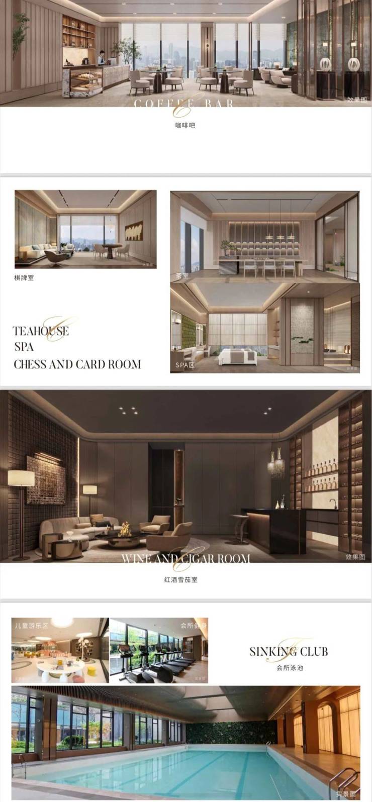中央公园会所里面有泳池、健身房、瑜伽室、儿童游乐园和休息区;
