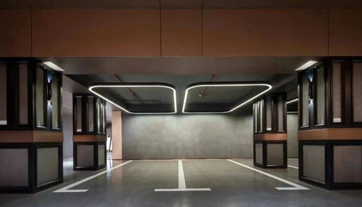 整个泳池天花板,呈现出海派拱形元素,落地玻璃窗外,是下沉式的景观空间: