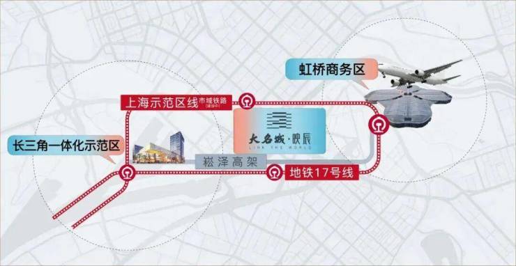 除了示范区线(在建),大名城映辰二期更有17号线的加持,从【赵巷站】出发,6站直达虹桥火车站,无缝换乘2号线、10号线,快速通达中山公园、静安寺、陆家嘴、新天地、淮海路商圈等传统市区,出行十分便捷。