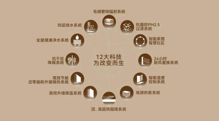 金茂·璞元从“温度、湿度、空气、阳光、水、声音”六大基本生命元素延伸12大科技体系,实现“舒温、舒湿、舒氧、舒净、舒音”的居住环境