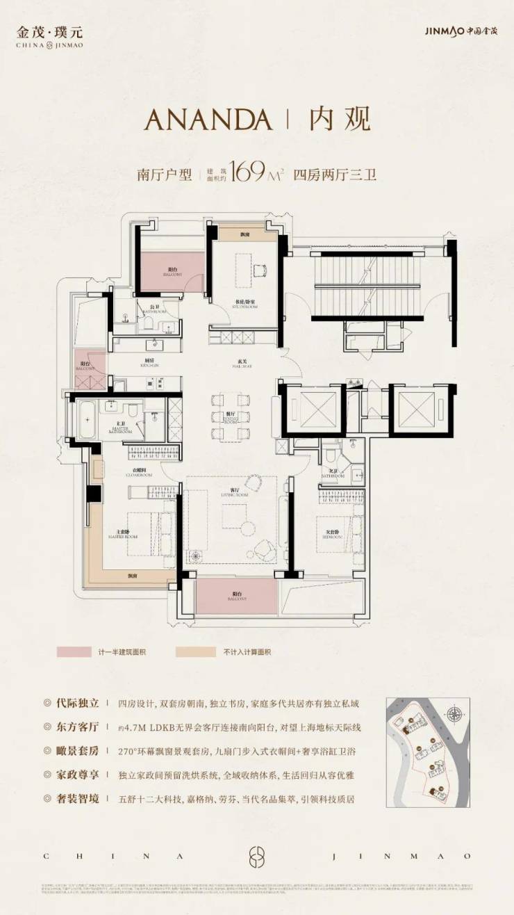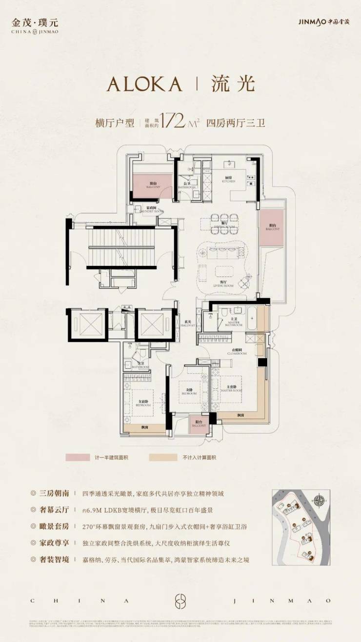 在建面约172㎡户型中,我们可以看到金茂对“三代同堂”生活方式的深刻理解!
