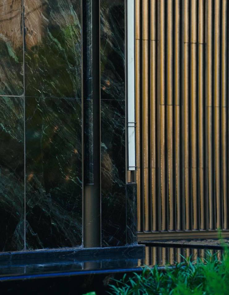 搭配来自巴西的马迪诺斯奢石幕墙,层次感、秩序感、隐奢艺术气息扑面而来,这样的组合,上海前所未见!