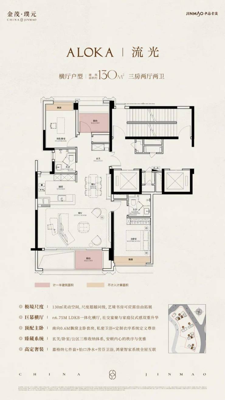 在建面约130m²户型中,金茂把每一寸面积都榨出了极致价值!