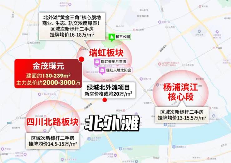 四川北路和杨浦滨江核心段目前次新标杆二手房挂牌均价约13-15.5万/㎡之间;