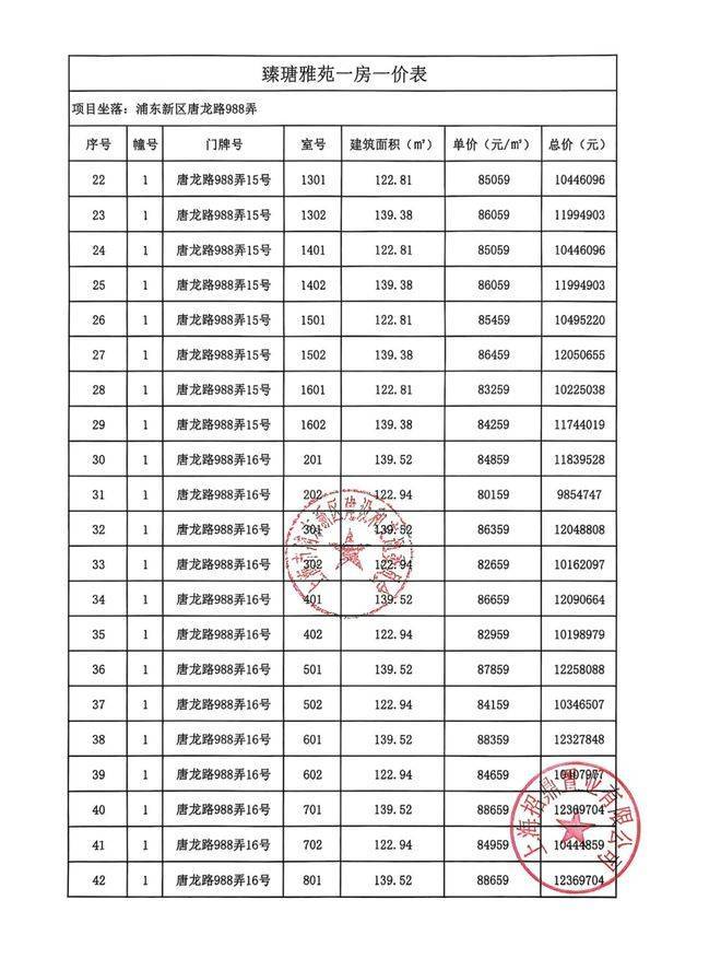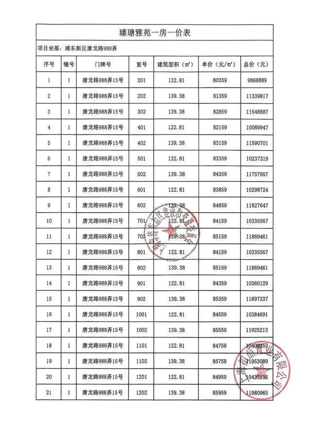 项目一房一价表