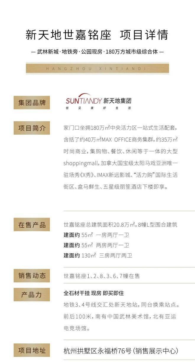 新天地世嘉铭座位于杭州市拱墅区石祥路71-4号,是一个2019年竣工的精装现房公寓项目,产权40年,物业费4.8元/㎡/月。