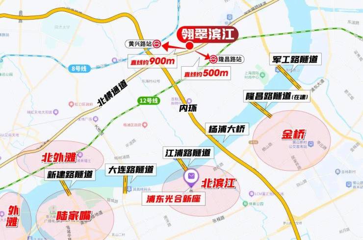 交通方面:地块位于杨浦内中环,距离内环直线约1公里,距离8号线延吉中路站直线约1公里,距离12号线隆昌路站直线约700米,交通网络便利。