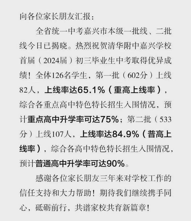 第一批上线率65.1%,第二批上线率84.9%,登顶嘉兴公立学校第一梯队。