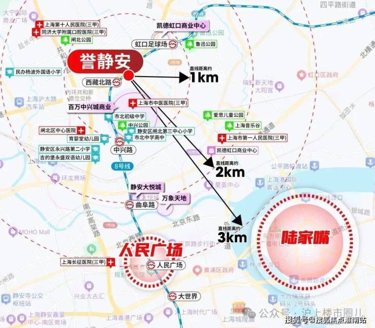 项目坐拥静安内环顶级资源配套:步行约200米至8号线西藏北路站(3站直达人民广场);约2公里范围内覆盖上海市中医院、上海市第一人民医院等三甲医疗资源;商业方面毗邻万象天地、静安大悦城等高端商业体。