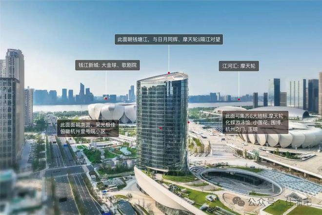 。项目以“双地标环抱”(莲花碗奥体中心+钱塘江)为核心卖点,占据奥体博览城东南角黄金位,直线距离莲花碗仅100米,是主城区唯一同时瞰江、观赛、拥城的稀缺资产