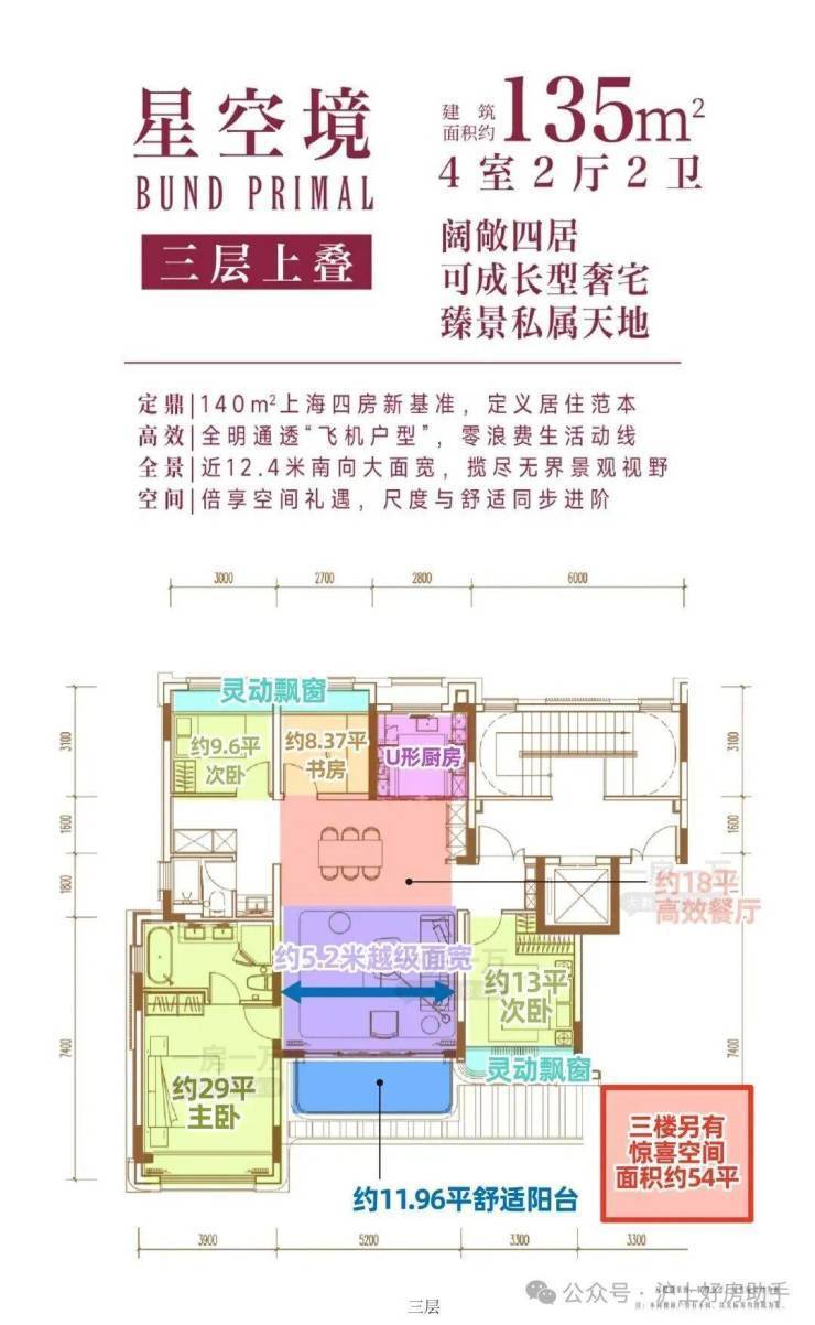 三层上叠,相当于“云端私邸+超额惊喜”,还有约54㎡惊喜空间,值得到实地感受!未来轻松实现三房变五房。