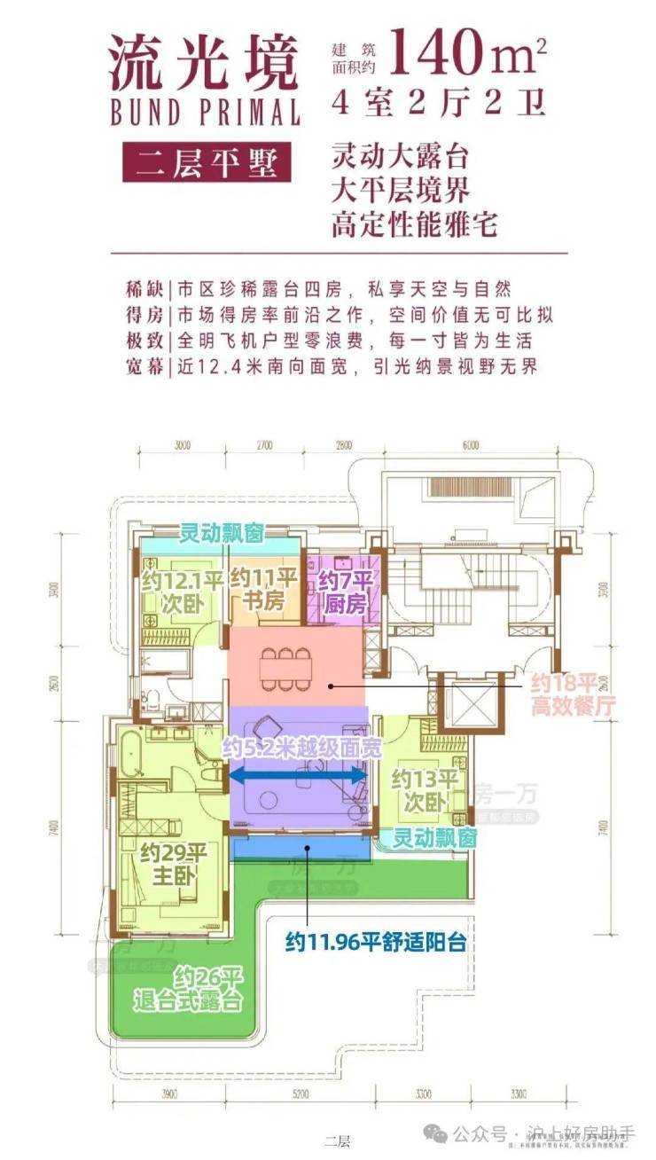 约140平户型,享受与下叠同等的面宽尺度,空间感直逼市面上185平产品。