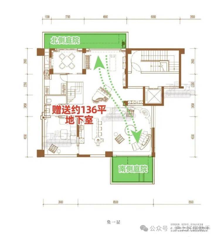 附赠南北通透的地下室(层高3.3米)搭配南北双下沉式庭院,具备远超传统别墅的采光井效果,可随心打造成家庭影院、健身房或私人藏馆。