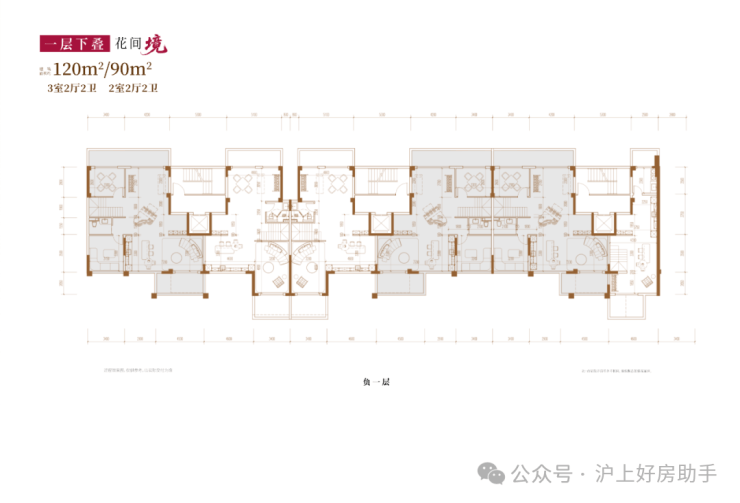 2、从内部空间体系来看,地上三层,层高分别是3.6米、3.3米和3.3米;每个单元一梯两户,每户均拥有类独立电梯厅;一楼带地下室及庭院,并通过创新退台式设计为二楼和三楼打造私家空中花园,形成户户有花园的墅居生活方式。
