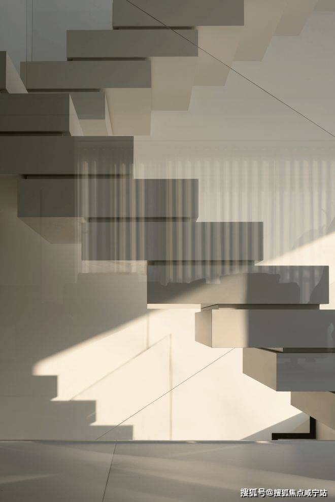 楼梯选用了纯白色,光是唯一的装饰品,在寻常中展现着空间最为纯粹的美。