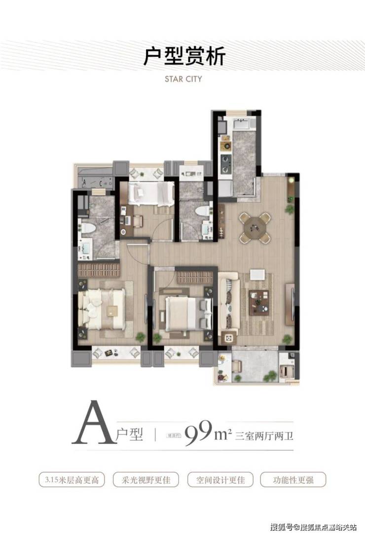 ·约89㎡户型:大虹桥范围不到90㎡的户型大部分都只做到2房,灿耀星城该面积段实现3房功能性,让自住客户一步到位,也让该产品进入二手市场后具备降维打击的优势!