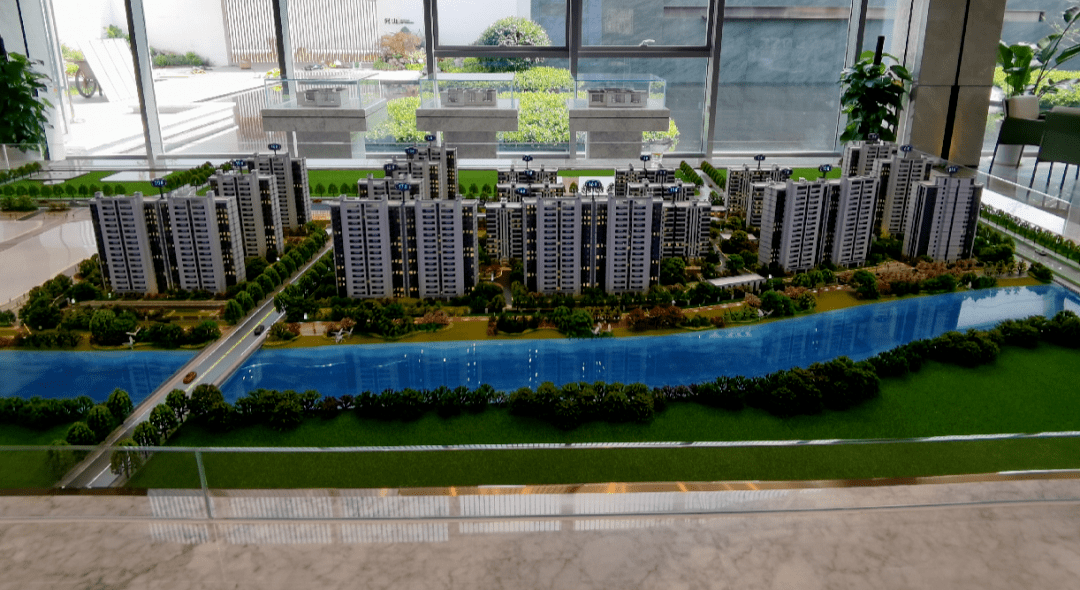 整个项目由两个地块组成,一个是纯住宅,打造了17栋小高层;一个是涵盖购物中心的地块,包括一座购物中心和3栋小高层,整个项目共20栋住宅楼栋。