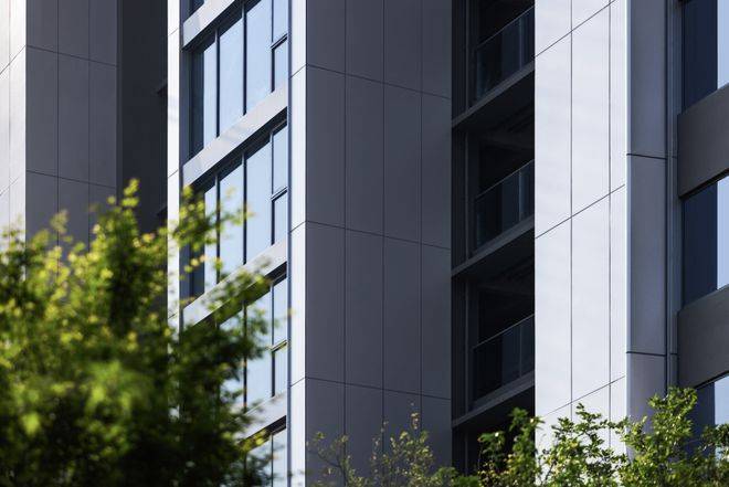 更颠覆行业认知的,是天阳对北立面的匠心打磨——在优化建筑功能性的同时,更将业主的归家体验纳入核心考量。湖与舍主入口设于项目北端,北立面成为业主归家的第一眼视觉焦点,为此天阳打破行业对住宅北立面“重实用、轻颜值”的固有思维,摒弃传统实墙设计,采用大面玻璃搭配铝板的高规格打造,让北立面成为南立面美学的自然延伸,既让业主归家第一眼即遇品质质感,更实现南北通透、采光升级,真正做到美学与实用兼具。