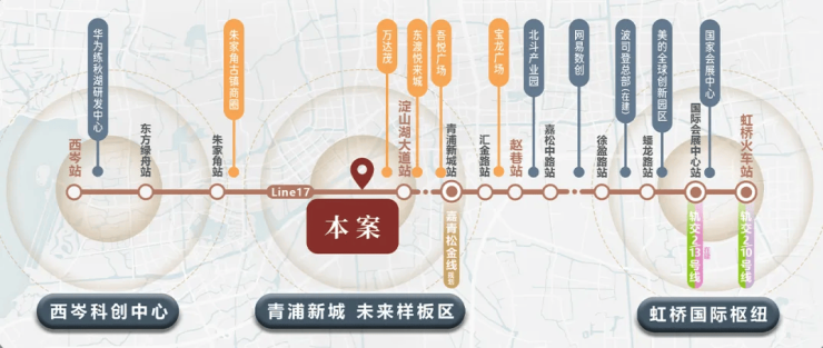 17号线迅捷联通华为研发中心、北斗产业园与虹桥商务区;示范区线及嘉青松金线更进一步拓宽了生活与出行半径。
