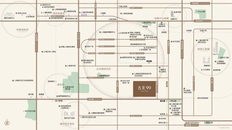这里还紧贴虹桥商圈,是上海TOP5商圈,拥有尚嘉中心(重奢)、虹桥南丰城、金虹桥商场等。