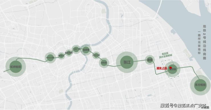 展开地图不难发现,整个上海的核心交通枢纽(虹桥+浦东机场),顶级商务CBD(南京路、陆家嘴、人广、静安寺等),和高尚住宅区(西郊、碧云、唐镇)全部都被2号线串联起来。