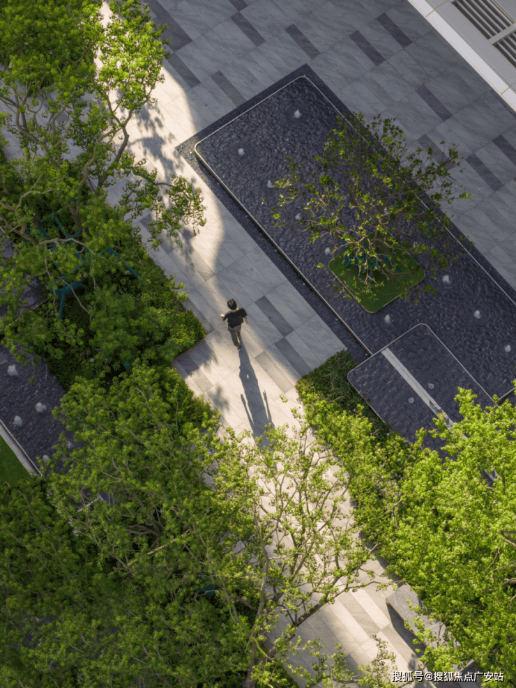 项目的景观设计也非常用心,围绕着建筑布局,打造了“一轴、一环、两脉”的特色景观。“一轴”指的是一条串联核心的中央景观轴,“一环”指的是一条环通社区的活力慢跑环,“两脉”则是两条联系南北的植物绿脉。