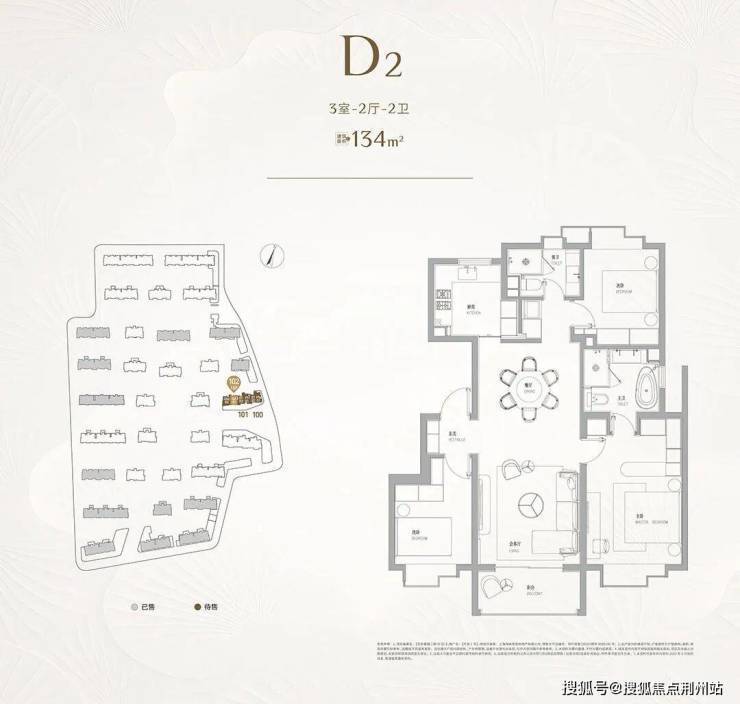 还有建面约134㎡3房户型供应,此户型主卧依旧是大套房设计,拥有独立玄关空间、厨房空间,北次卧门口还有收纳空间,典型的飞机户型,各空间互不干扰,非常适合三代同堂或一家三口居住。