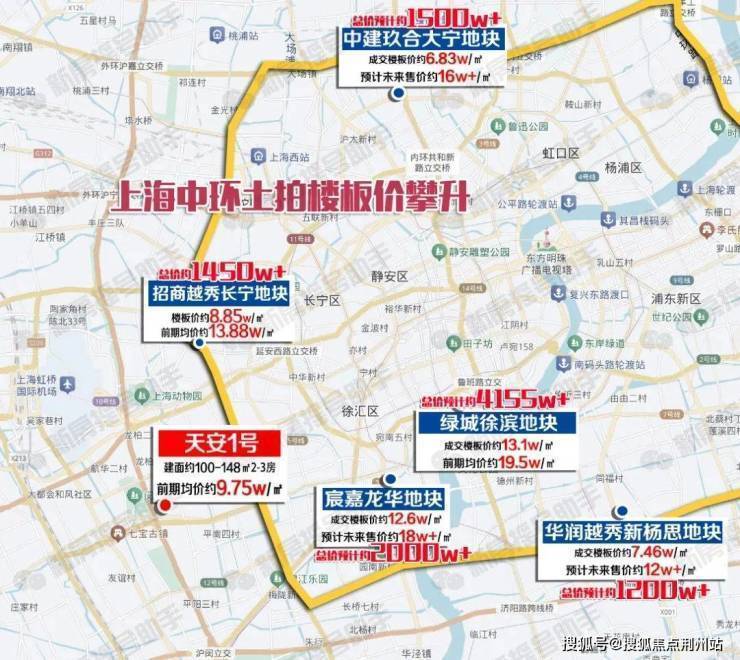 聚焦中环沿线来看,靠近中环的大宁、北新泾土拍楼板价破8w+/㎡,新房售价将达到13-16w+/㎡的水平,同样中环附近的「天安1号」以10w/㎡以内的均价,堪称中环附近价格洼地的存在!