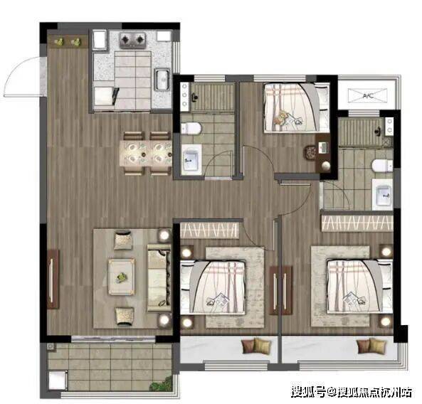 约113.9㎡3房2厅2卫,边户,三开间朝南,户型方正,大进深阳台,采光充足,南北通透,房间均带飘窗,主卧套房设计,空间充裕,自带独立卫浴。