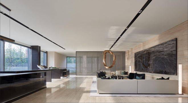 建筑方面项目采用上海独一无二的“类幕墙设计”立面,再加上平推窗与立柱一体化设计,以及超大尺度的落地玻璃窗,搭配“开放式铝板设计”。将大师级的灵感和理念做到了全方位落地还原!