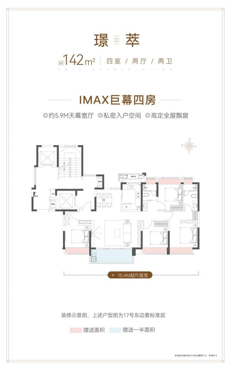 这套建面约142㎡的四房,堪称人生进阶之作。即使是三代同堂,尺度感也是丝毫不虚。
