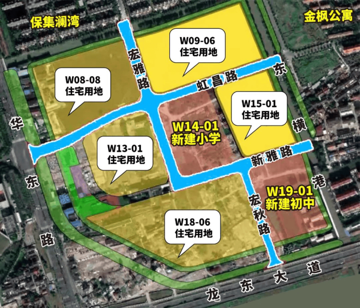 浦发虹湾项目周边规划有两块教育用地,一所小学和一所中学。
