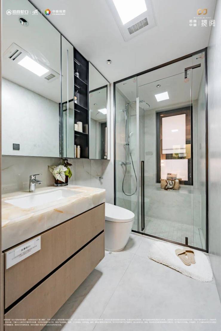 【招商中旅·揽阅】项目主卫洗浴区/坐便区/盥洗区实现分段式干湿分离,起居动线更为合理有序。