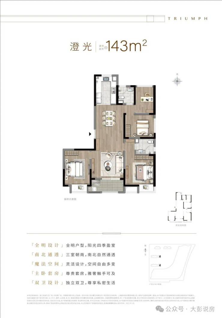 主卧套房(独立卫 + 飘窗),双卫设计