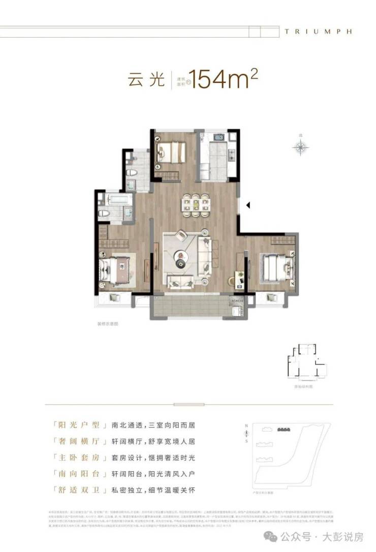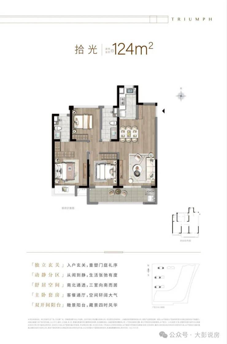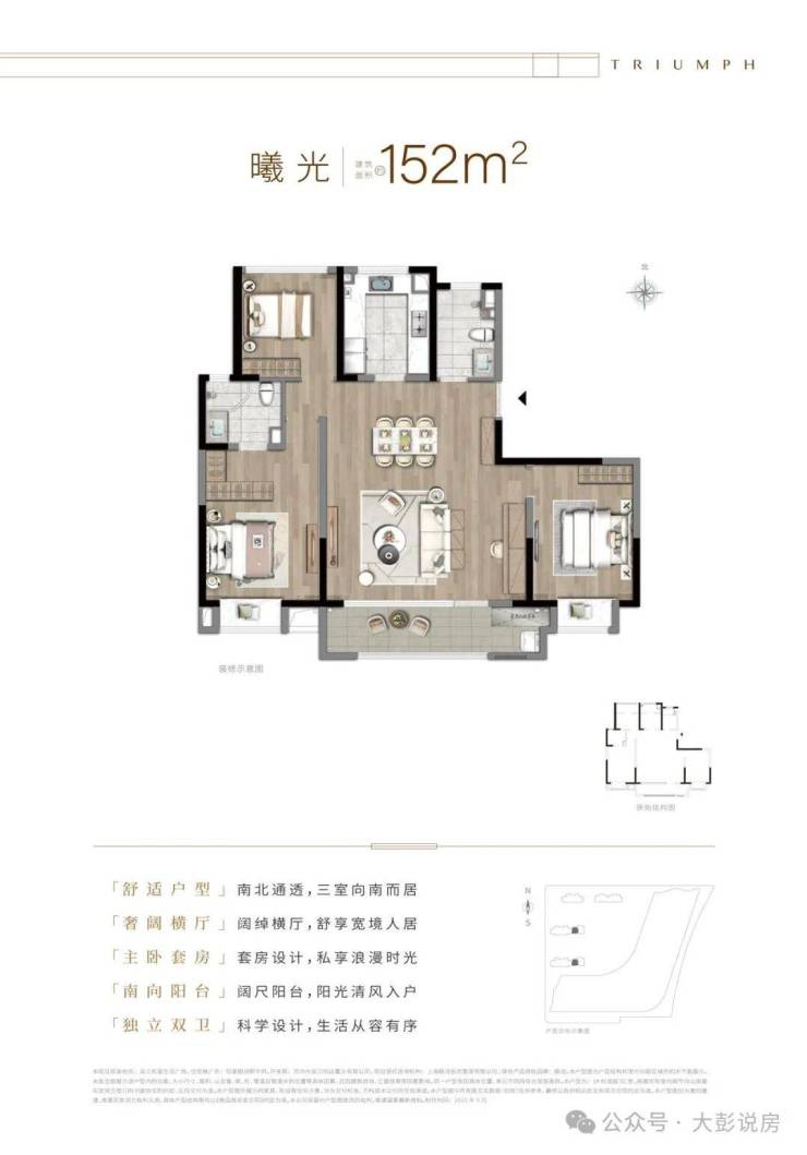 三开间朝南 + 南北通透 + 动静分区