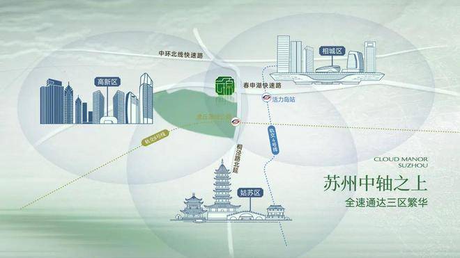 它牢牢占据苏州城市发展中轴——桐泾路北延线的黄金位置,同时与万亩虎丘湿地公园仅一步之遥。
