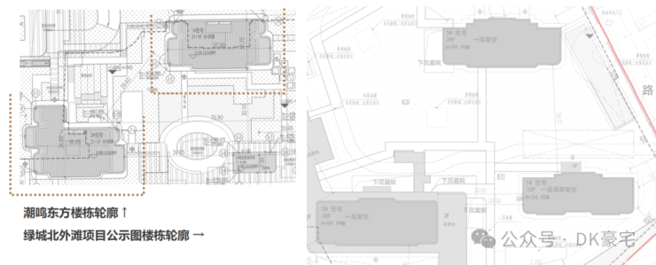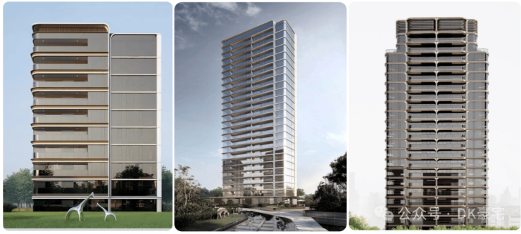 所谓公建化就是更接近玻璃幕墙写字楼,而不像传统住宅那样,看起来有很多凹凸。其实潮鸣东方的产品不是那么“绿城”,我们可以从两个楼栋轮廓上就能看出差别。