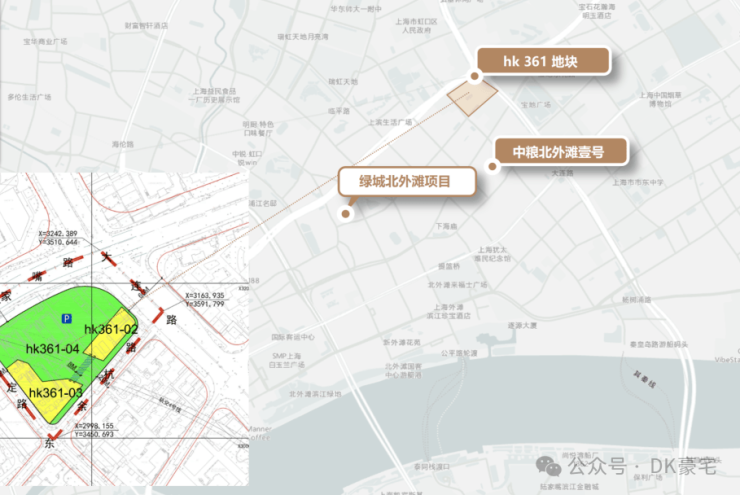 绿城北外滩项目向东大约800米,虹房手上还拿捏着一块地,坐镇北外滩东北角,由去年协议出让获取,楼板价8.4万/㎡。