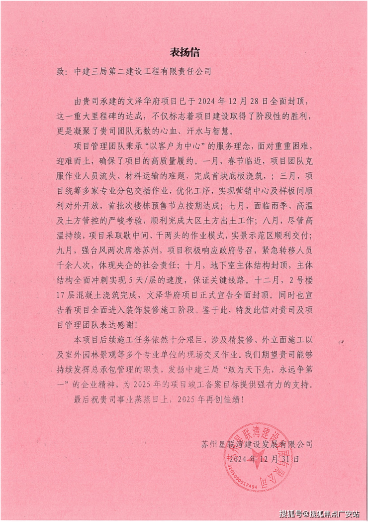 获得业主来信表扬文泽华府售楼处电话:400-9939-964