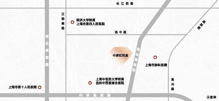 医疗:项目周边有上海中医药大学附属岳阳医院(三甲)、上海市肺科医院(三甲)、同济大学附属上海市第四人民医院(二甲)等医疗资源。