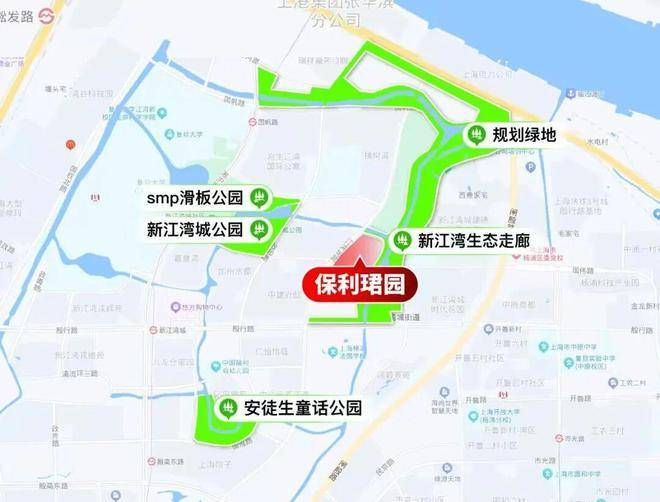新江湾城拥有四大城市公园,其中项目西侧有约7.35万公顷的新江湾城公园,SMP滑板公园,安徒生公园,项目北侧和东侧是约24万方的生态走廊,还有9条天然水系,聚集了200多种鸟类。