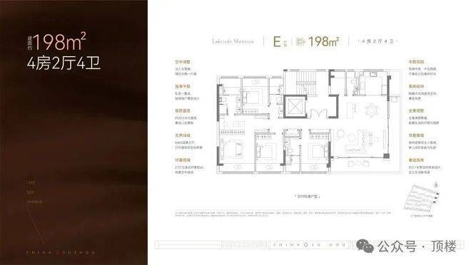 198㎡大平层:独立电梯厅入户,动静分区,双套间设计,3.1米层高+270°IMAX环幕阳台,将湖景纳入日常生活。