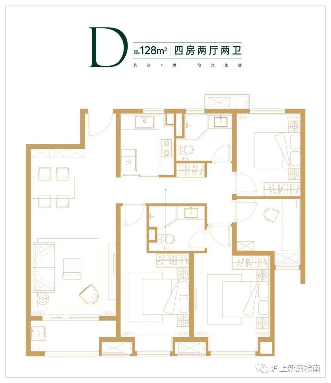 建面约128㎡四房两厅两卫