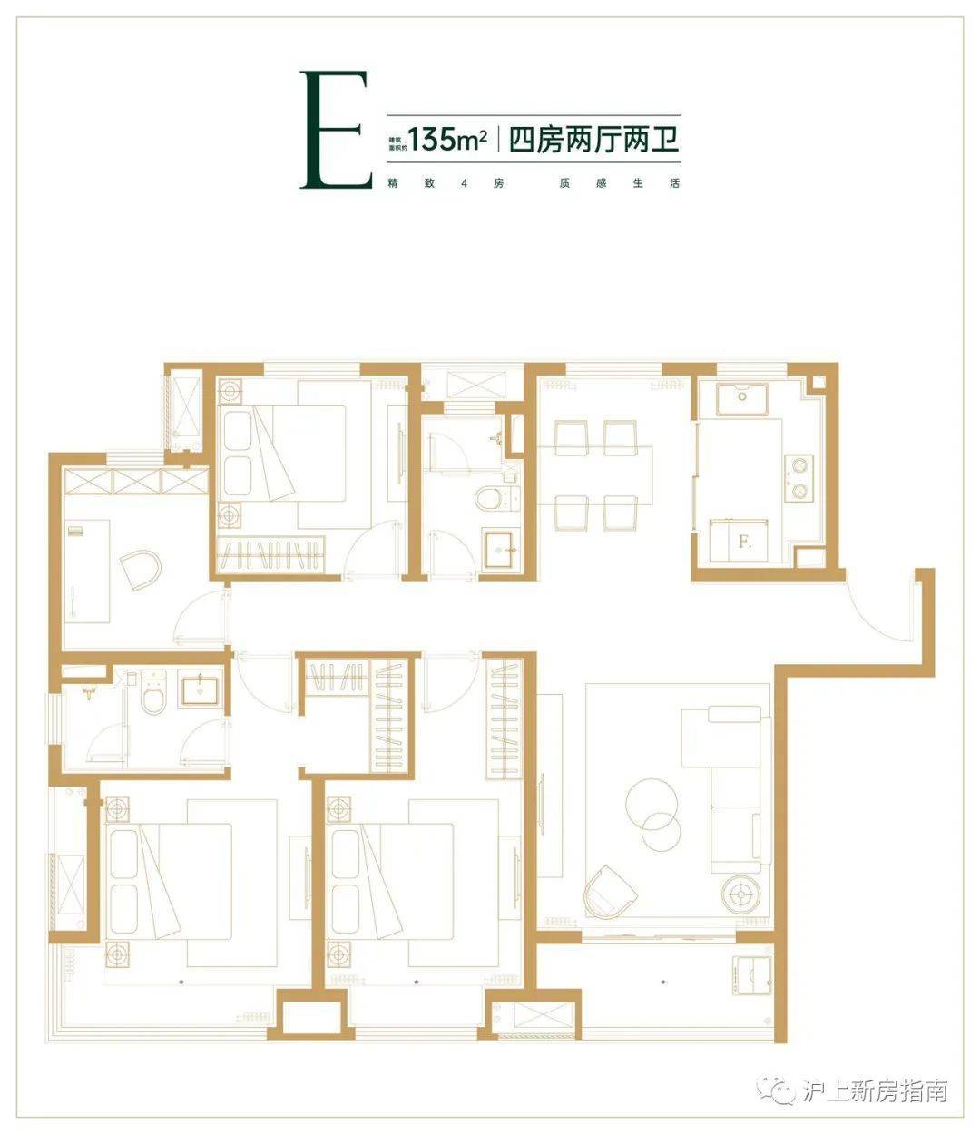 建面约135㎡四房两厅两卫