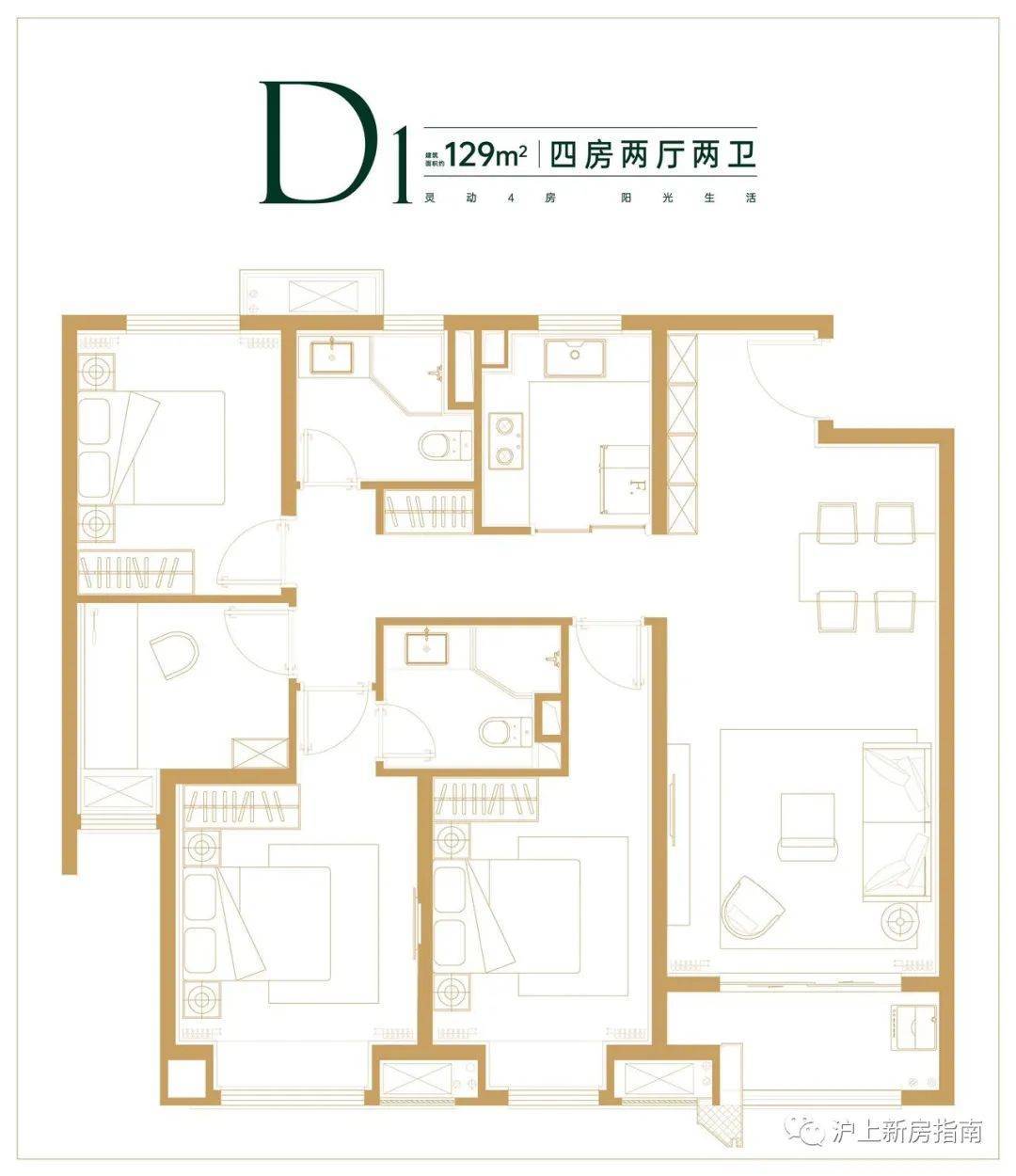 建面约129㎡四房两厅两卫